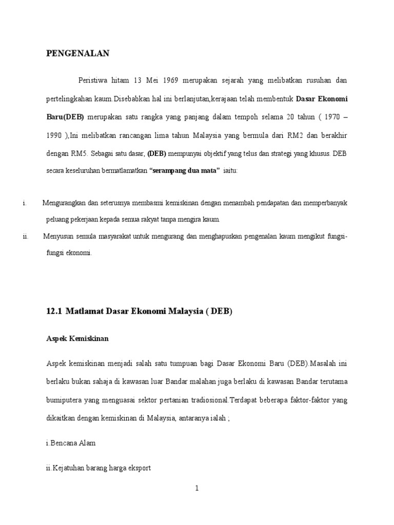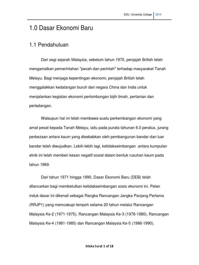2 tujuan asal pengenalan dasar ini adalah untuk: Dasar ekonomi baru (bab 8 ting. Read this essay on dasar ekonomi baru. Sejarah ekonomi mikro bermula dari perkembangan awal ilmu ekonomi modern. 2 program transformasi ekonomi hala tuju untuk malaysia 63 bab 1: Sebagai salah satu cabang dari ilmu pengetahuan , maka dalam dua abad setelah era adam smith dunia telah berkembang jauh, sedangkan pada masa adam smith revolusi industri baru saja akan dimulai. Get the knowledge you need in order to pass your classes and more. Tujuan dasar dari kebijakan orde baru adalah pembangunan ekonomi negara dengan bergabung kembali ke dalam jajaran ekonomi dunia yaitu namun sebagai akibat dari rakyat yang merasa diabaikan dari keuntungan ini terjadi sejarah peristiwa malari pada tahun 1974, yang berawal dari. Come browse our large digital warehouse of free sample essays. Dan distribusi ekonomi islam terdiri dari dua. Pihak british telah menggalakkan kedatangan tenaga buruh dari negara china dan india untuk kepentingan. Dasar ekonomi baru pertumbuhan negara dan pencapaian ekonomi orang melayu. Dasar ekonomi baru merupakan satu bentuk perancangan yang dilancarkan oleh kerajaan dalam tahun 1970 melalui rancangan malaysia kedua.